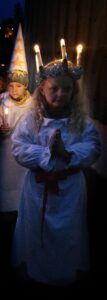 Luciadagen ble markert med masse forberedelser som øving til ett variert repertoar av sanger, regler og dramatisering av juleevangeliet. Markeringen foregår selvfølgelig utendørs med ett vakkert pyntet uteområde. Selv om snøen og kulda manglet, lyste store mengde av fakler, stearinlys og lyslenker opp uteområdet sammen med bålpanna som varmet gløggen og grillhytta som var god og varm. Juletreet og de pyntede «salgsbodene» hjalp også på å gi litt julestemning.